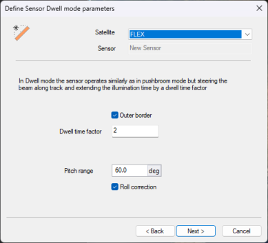 In Dwell mode the satellite is manoeuvred during the data take, extending the sensor exposition time by a configurable factor.