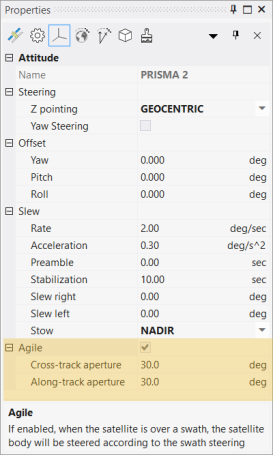 IMPORTANT: the satellite needs to be agile, to allow both along-track and cross-track steering. This requires setting the satellite attitude: