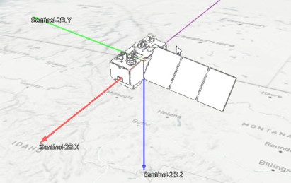 The horizon mask is referred to the satellite body fixed coordinate system, with the X coordinate pointing towards the direction flight, the Z coordinate pointing downwards to Earth, and the Y coordinate orthogonal to both. This system is fixed with the satellite body, independent of satellite attitude position and motion.